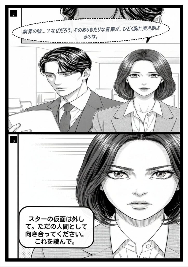 ショー・ビジネスにおける嫉妬や陰謀は、時に作品のクオリティだけでなく、関わる人々の精神にも大きなダメージを与えます。このセクションでは、そうした業界の負の側面を具体的に描き、成功の裏に隠された苦悩や倫理的な問題を提起することで、物語のリアリティを高める必要があります。また、SNSによるデマの拡散など、現代社会における情報操作の危険性も示唆します。