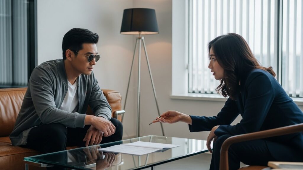 二人の出会いは、イ・ソヨンがカン・ジウを自身の新作ドラマの主人公としてオファーするために、彼の所属事務所を訪れたことから始まります。最初の顔合わせで、カン・ジウはソヨンの情熱的なプレゼンテーションに心を動かされつつも、これまでの経験からくる業界への懐疑心と、自身のイメージに合わない役柄への抵抗を感じています。彼はこれまでのキャリアで、多くの作品を「消費」されてきたと感じており、真摯に作品と向き合おうとするソヨンの姿勢に戸惑いを覚えます。