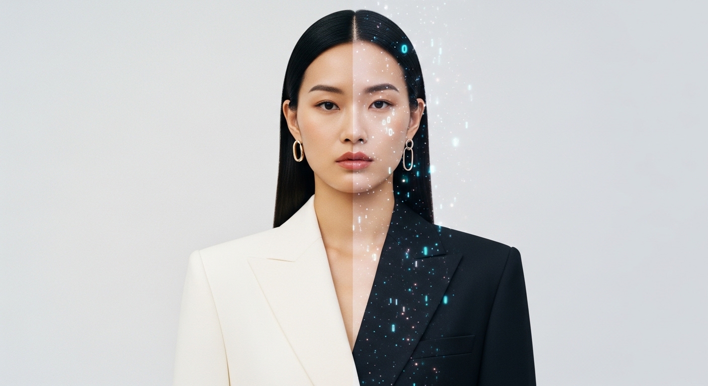2026年の高度な修正技術が、実在の人間をデジタル生成物のように見せている。 - 要点4: AIモデルと実在モデルは、2026年現在も明確に使い分けられている。