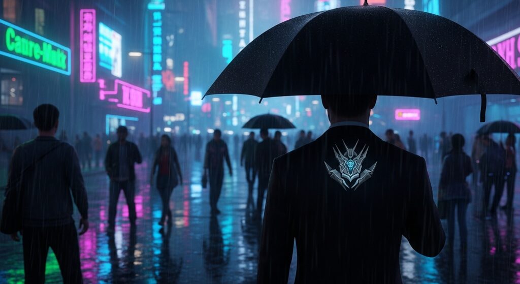 7話のラスト数ページで描かれた、街の雑踏に紛れる「黒い傘の男」。彼の存在は、主人公を追う敵対勢力が既にすぐそばまで迫っていることを明示しています。この男の胸元にチラリと見えたバッジのデザインが、主人公の持つペンダントと対になる形状をしていることから、彼らが「同じ組織の出身」か「敵対する古い家系」であることはほぼ確定的です。