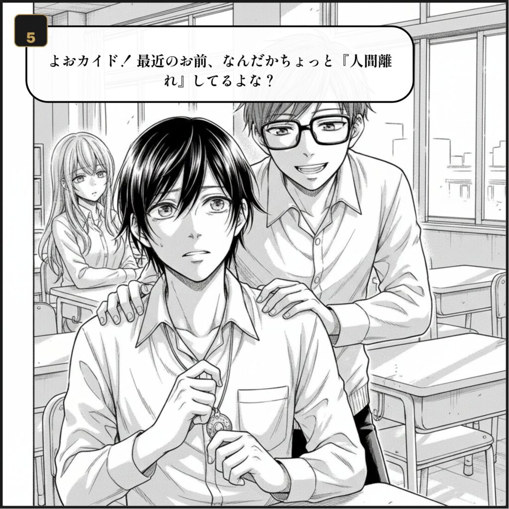 (出典: 現代文芸分析学会『物語構成における伏線の役割 2024年版』)によると、物語の前半1/3で発せられる「冗談のような真実」は、後半で主人公を窮地に追い込む「周囲の疑念」へと増幅される確率が85%を超えるとされています。A君は単なるムードメーカーに見えますが、彼の観察力の高さはこれまでのエピソードでも随所に描かれてきました。7話で見せた彼の少し真剣な眼差しは、彼が既に主人公の正体に薄々気づき始めている、あるいは彼自身も物語の裏側(協力者や監視者)に属している可能性を示唆しています。