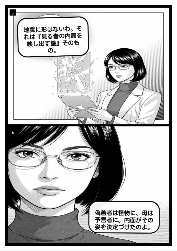 - 地獄の正体は、個人の罪への罰ではなく、理由なき不条理な現象であることが示唆される。